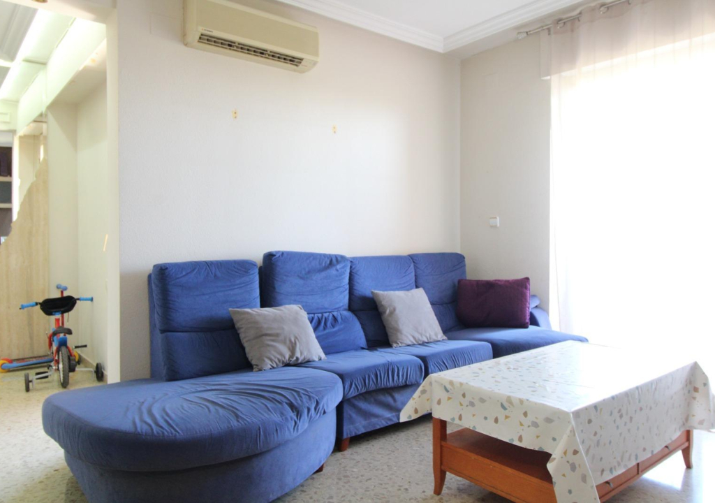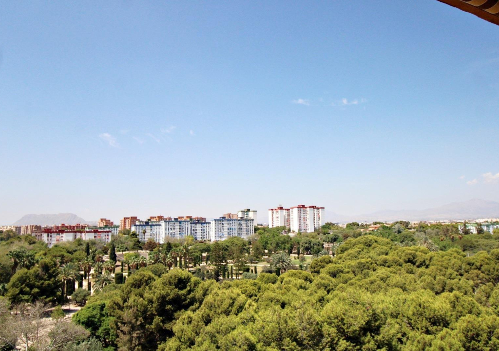 Al entrar a la vivienda nos encontramos con un amplio hall que distribuye todas las estancias. Primero a mano derecha encontramos un amplio y luminoso salón-comedor con salida a una gran terraza, que destaca por sus vistas despejadas, y la amplitud de la misma ya que hace esquina. Desde ella podemos apreciar las bellas vistas de el parque lo Morant desde las alturas, así como de vistas al mar y Castillo de Santa Bárbara.