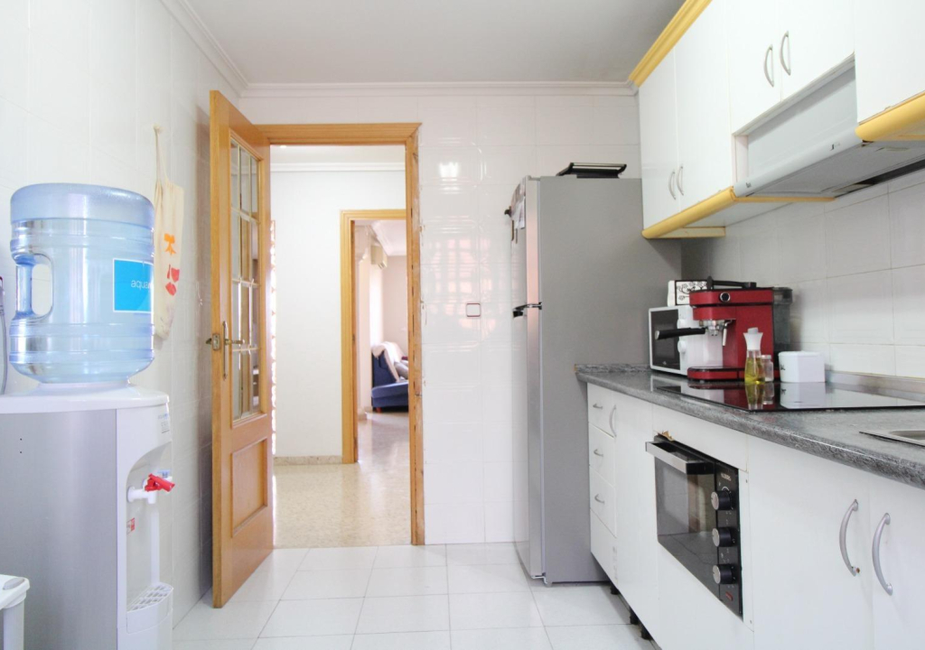 Justo enfrente de el salón-comedor encontramos la cocina independiente, con salida a una practica galería. Seguidamente al lado de la cocina nos encontramos con dos dormitorios, el primero de ellos simple pero de buen tamaño…y el segundo de ellos doble, ambos con armarios empotrados.