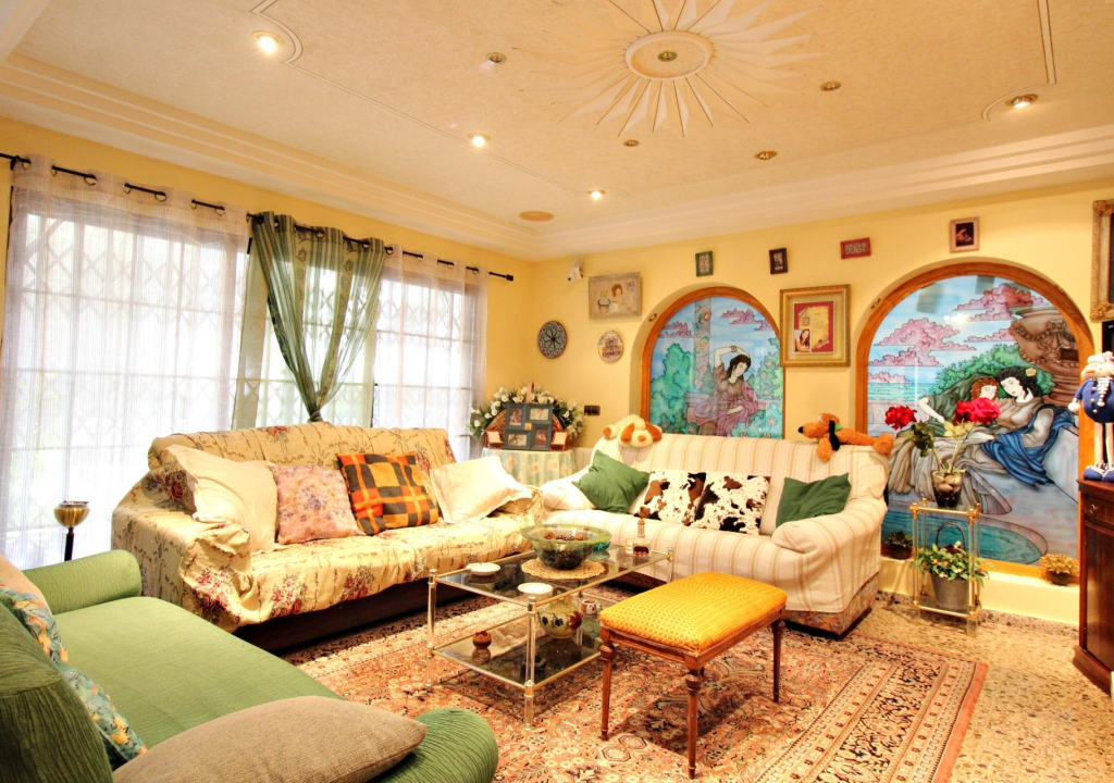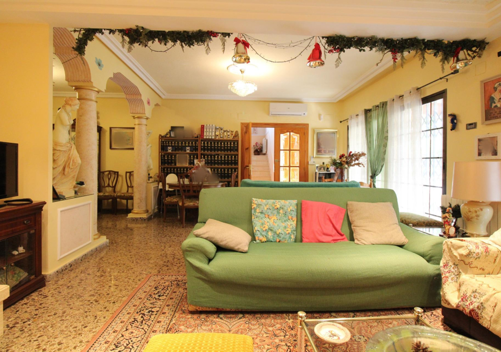 La vivienda dispone de 3 alturas, sótano, planta principal y primera planta. En las cuales podemos encontrar dos salones muy amplios, cocina con office, hall , 6 dormitorios (de los cuales 4 son dobles y 2 simples) y 4 cuartos de baño completos .