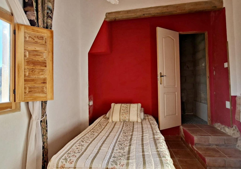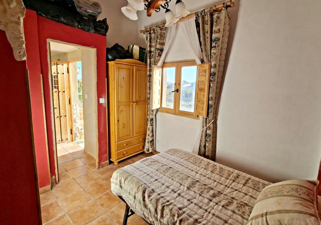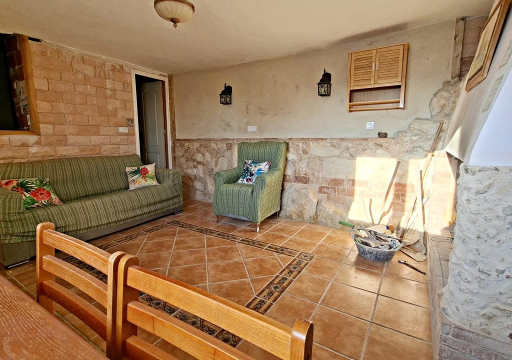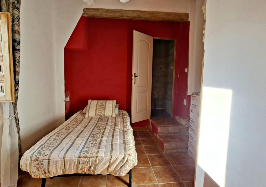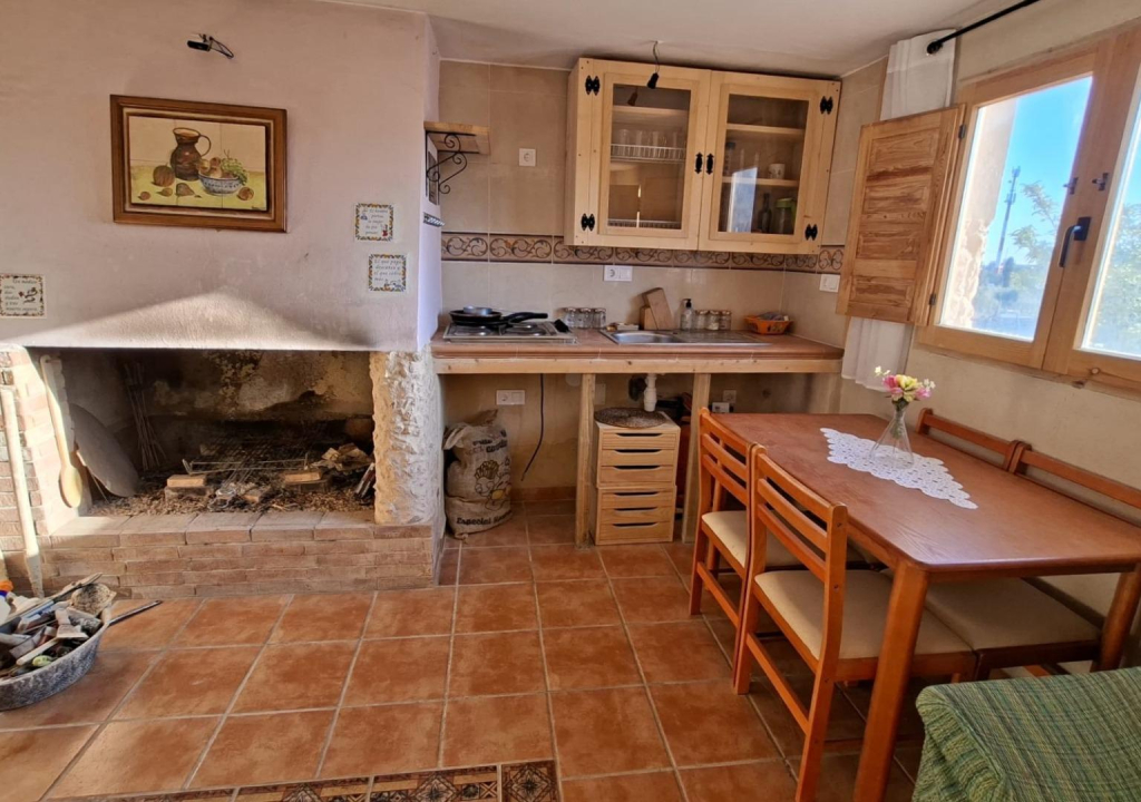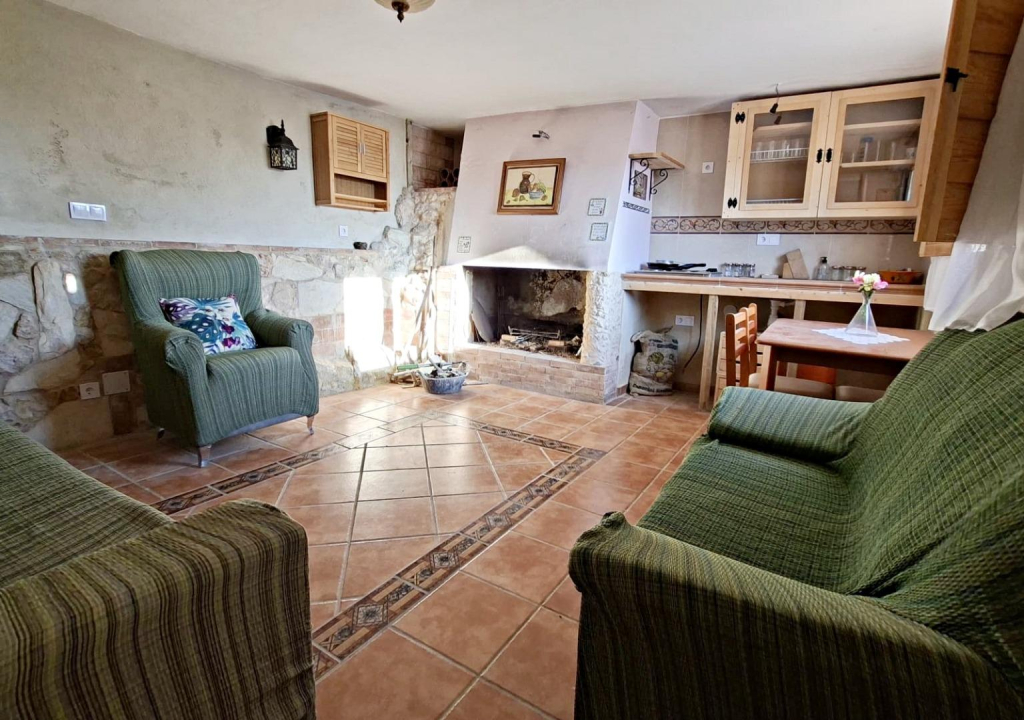 En la parcela encontramos una acogedora casita de unos 85 m², llena de luz y con un encanto muy especial. Nada más entrar te recibe un salón con cocina americana, un espacio abierto y cálido perfecto para compartir momentos en familia o con amigos. En la planta principal también se encuentra el dormitorio principal con aseo, actualmente en proceso de finalización, y otra estancia a medio terminar que ofrece muchas posibilidades: desde un vestidor amplio hasta un despacho o una habitación adicional.