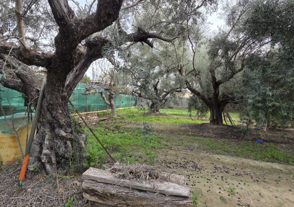 Actualmente sin edificar, encontramos una variedad de olivos casi centenarios, que el propietario cuida y con los que produce aceite. Además, cuenta con un granado que sigue dando fruto. En la esquina de la parcela encontraremos, asimismo, un pequeño cobertizo en el que se guardan los materiales de trabajo.