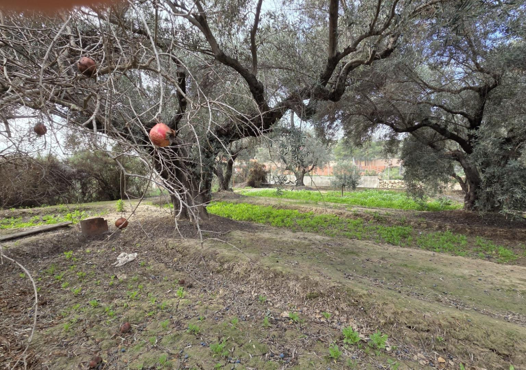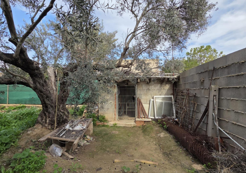 Actualmente sin edificar, encontramos una variedad de olivos casi centenarios, que el propietario cuida y con los que produce aceite. Además, cuenta con un granado que sigue dando fruto. En la esquina de la parcela encontraremos, asimismo, un pequeño cobertizo en el que se guardan los materiales de trabajo.